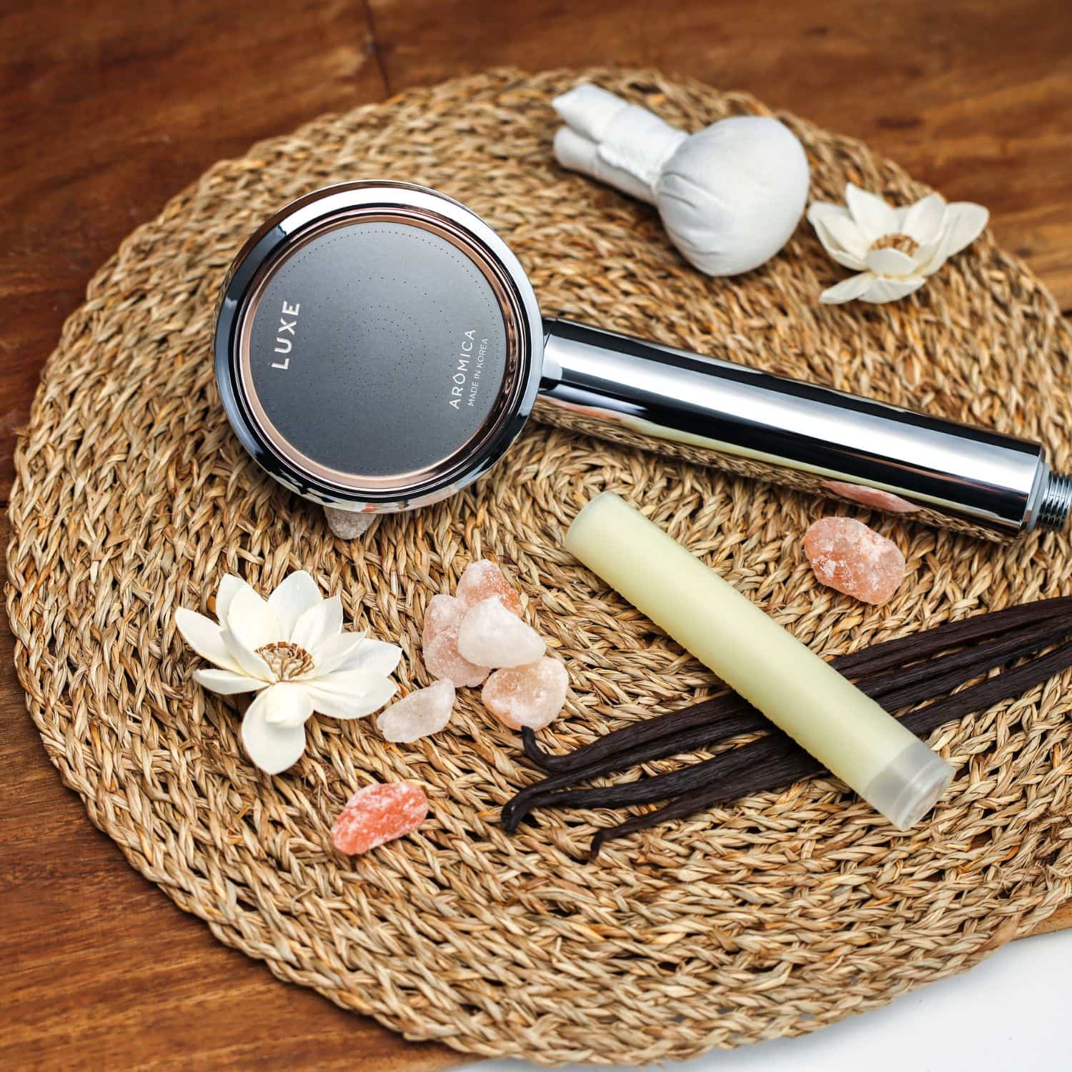 Aromica ARO LUXE – išskirtinio dizaino ir funkcionalumo dušo galvutė su pažangiomis vandens taupymo, valymo ir vitaminų tiekimo savybėmis.